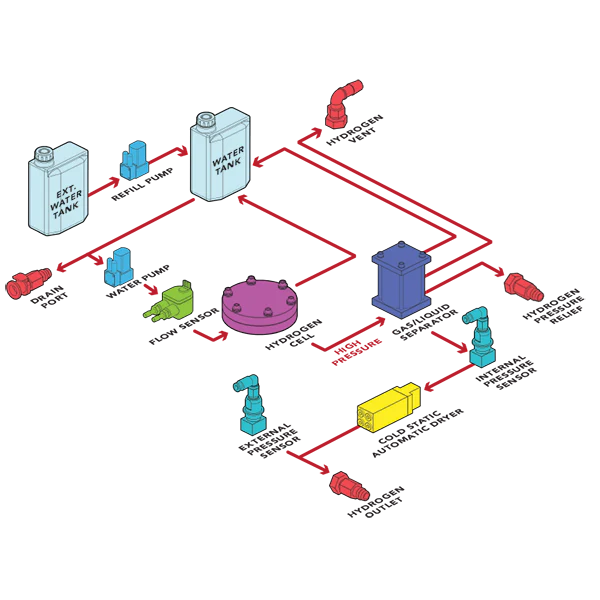 | Safety | Automatic shut down - internal/external hydrogen leak, overpressure and low water |