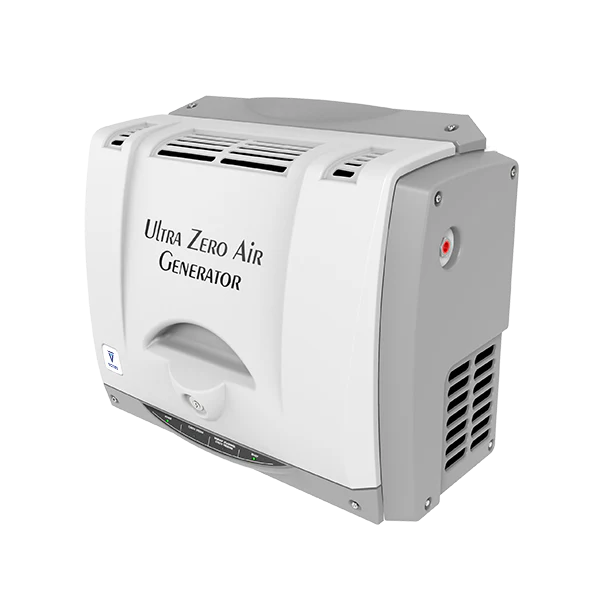 The GT Plus 1500 Ultra-Zero Air Generator are designed to supply ultra pure hydrocarbon-free zero air for GC-FID applications. Catalytic oxidation technology eliminates hydrocarbons to 0.1 ppm, resulting in a flat, stable baseline, increased sensitivity, and repeatable analysis.