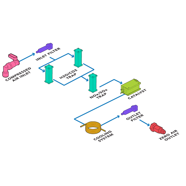 The GT Zero Air Generator removes CO, CO2, NOX, SOX, and water vapor, making it ideal for demanding applications such as TOC, continuous emissions monitoring, and process control applications.