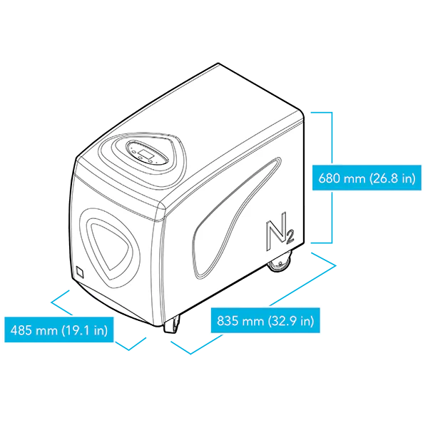 The Mistral Evolution 10 Nitrogen Generator (PSA technology), which includes an integral oil-free air compressor, delivers a continuous stream of pure nitrogen gas of >99.5% at a flow rate of 10 L/min. It uses the pressure swing adsorption (PSA) system that removes oxygen, carbon dioxide, and water from compressed air. The resulting stream of pure nitrogen is ideal for LCMS techniques and other inert gas applications.
