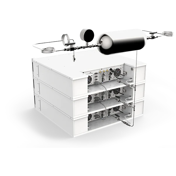 The NM Plus 100 FID Station Hydrogen Generator uses the latest proton exchange membrane (PEM) technology to produce pure hydrogen at a flow rate of 100 mL/min. The horizontal format is designed to sit under and support the weight of your GC, optimizing bench space. At only 150 mm (6 inches) high, the generator will still allow easy access to the injectors of any GC on the market.